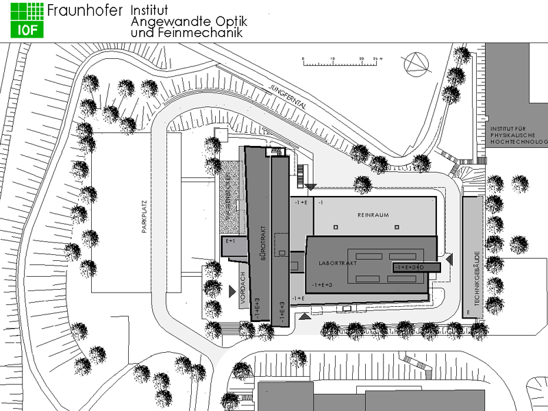 Die Fraunhofer Gesellschaft errichtete in Jena einen Neubau für ihr Institut für angewandte Optik und Feinmechanik. Neben den in einzelnen Gebäudeteilen konzentrierten Büro- und Labornutzungen gehörte auch ein Reinraum zum Bauprogramm.